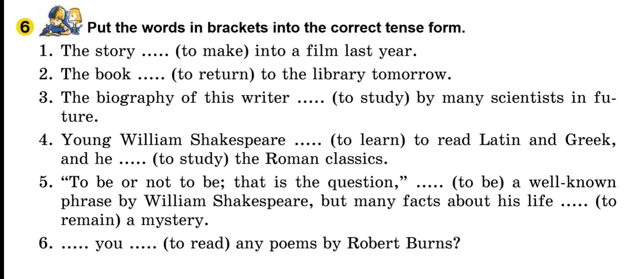 4. Young William Shakespeare learnt to read Latin and Greek, and he studied the Roman classics. (Шекспир жил давно, поэтому говорим о его биографии в прошедшем времени)