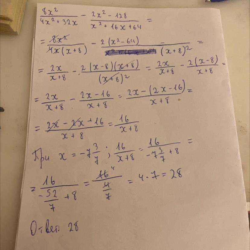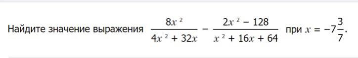 Алгебра 8 класс. Найдите значение выражения при х = -7 целых 3/7. Прошу подробное решение. Сам пример и более понятное значение х прикреплено в виде фото