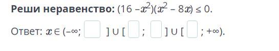 Реши неравенство: (16 –x2)(x2 – 8x) ≤ 0.