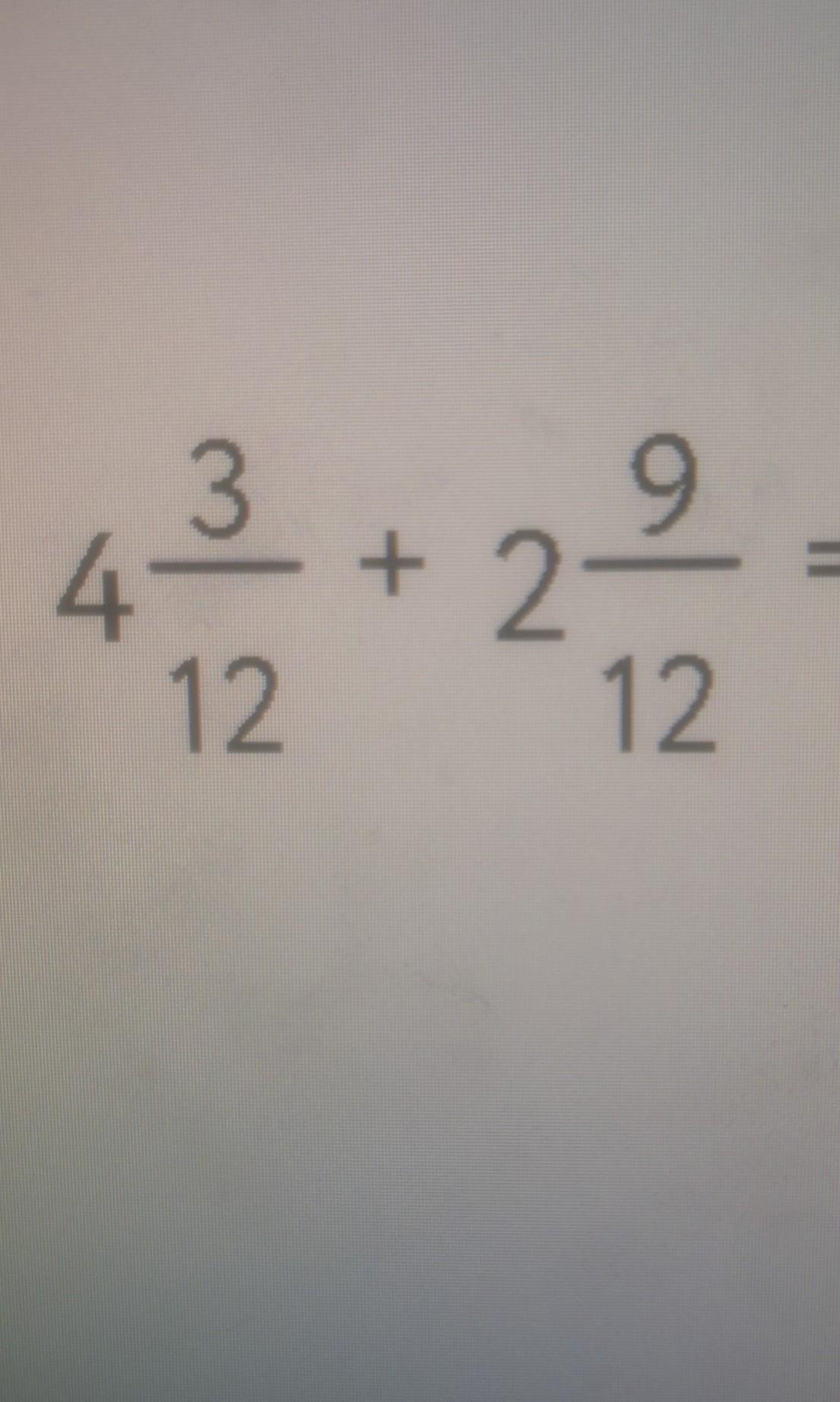 4 3/12 + 2 9/12 = (4 +2) (3+9)/12 = 6 12/12 = 7