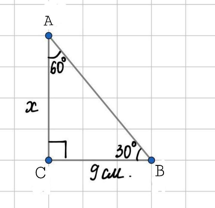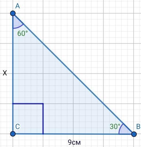 Дано:ΔАBC , ∠A = 60° ,∠C = 90°, катет CB равен 9см
