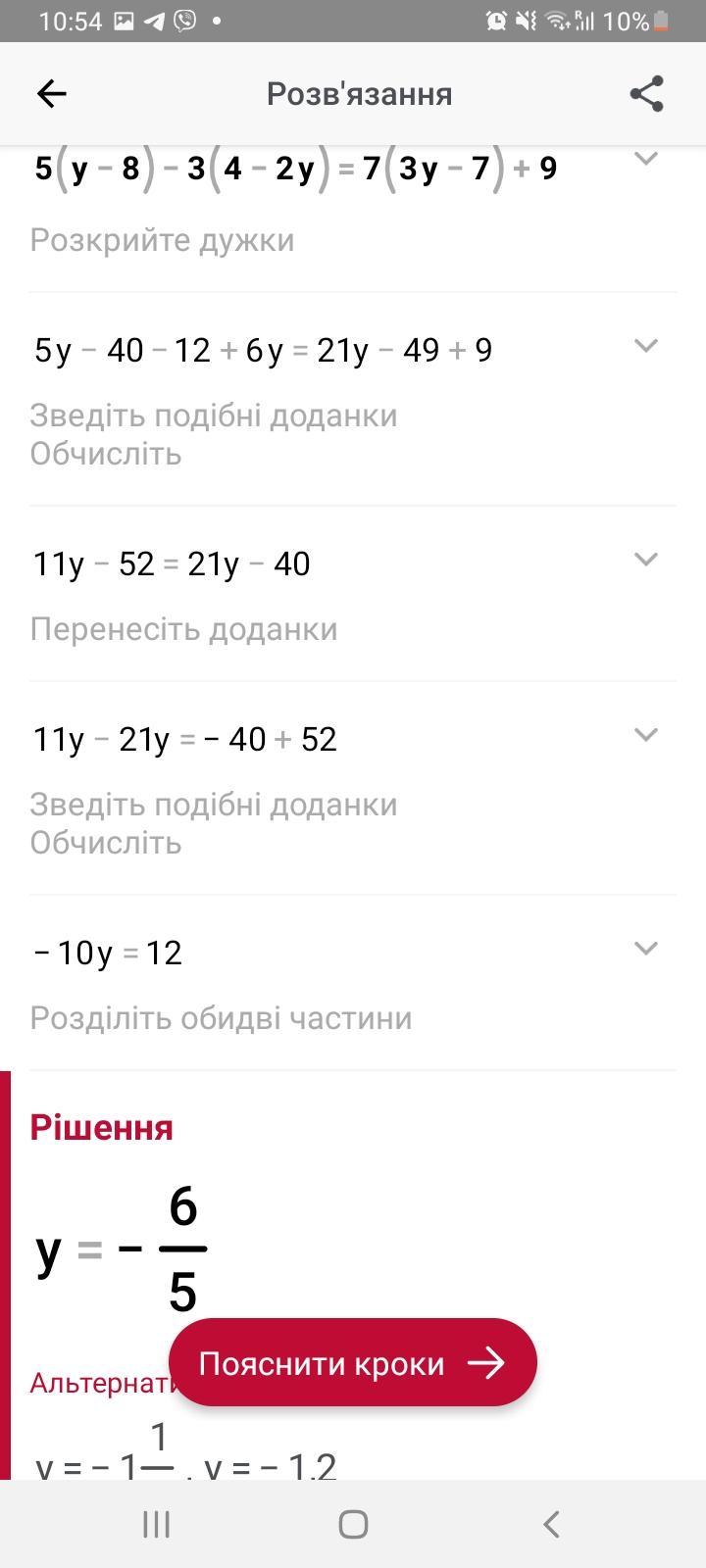 5(у-8)-3(4-2у)=7(3у-7)+9