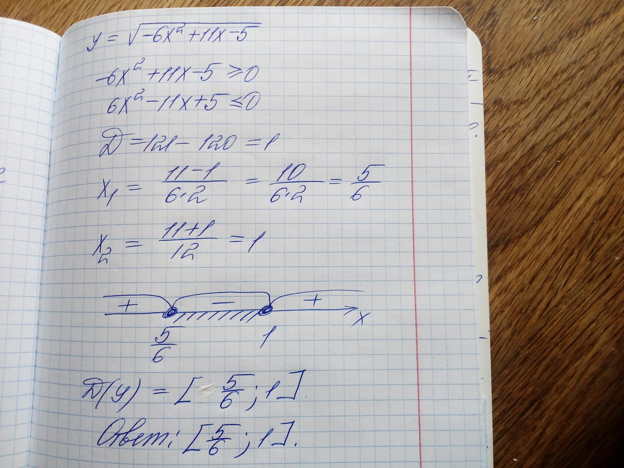 помогите пожалуйста наидите область определение функции y= sqrt -6x^ 2 +11x-5 дам 50 баллов