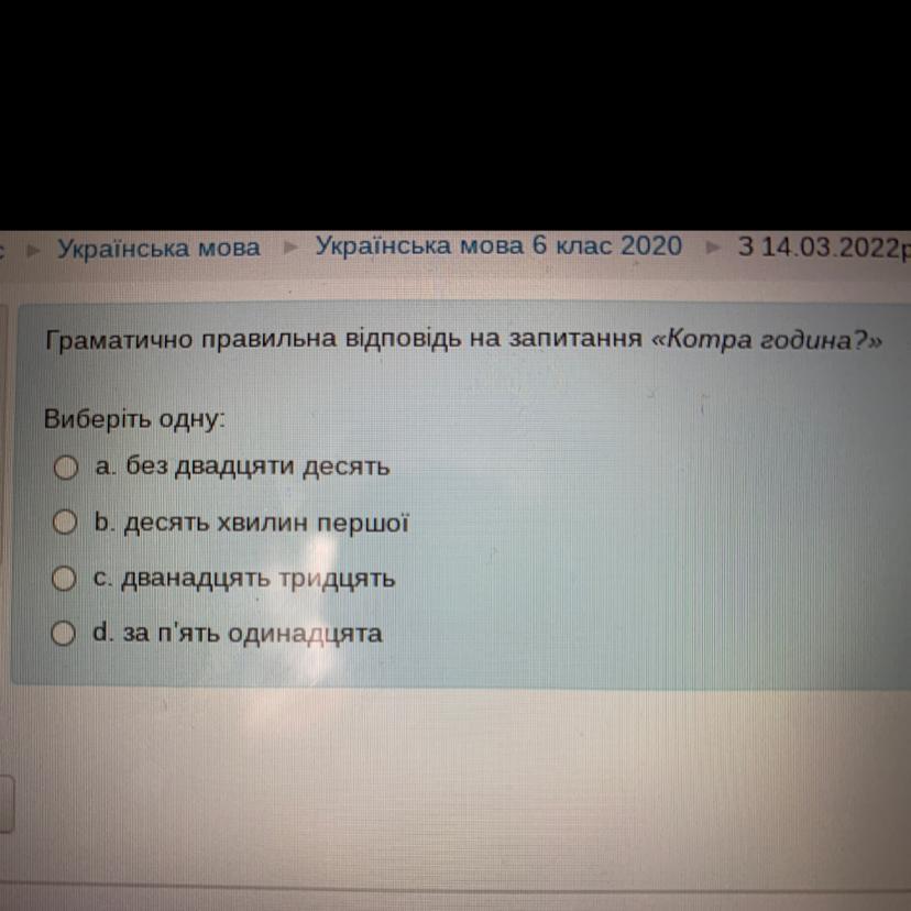 D. за п'ять одинадцята.