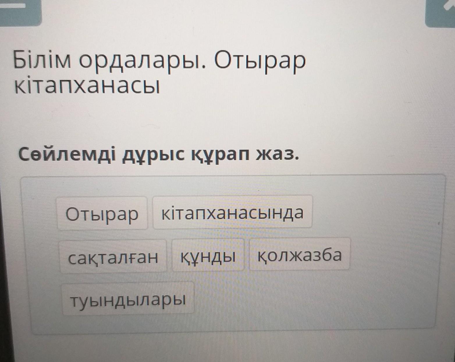Сөйлемді дұрыс құрап жаз. Отырар кітапханасында сақталған құнды қолжазба туындылары