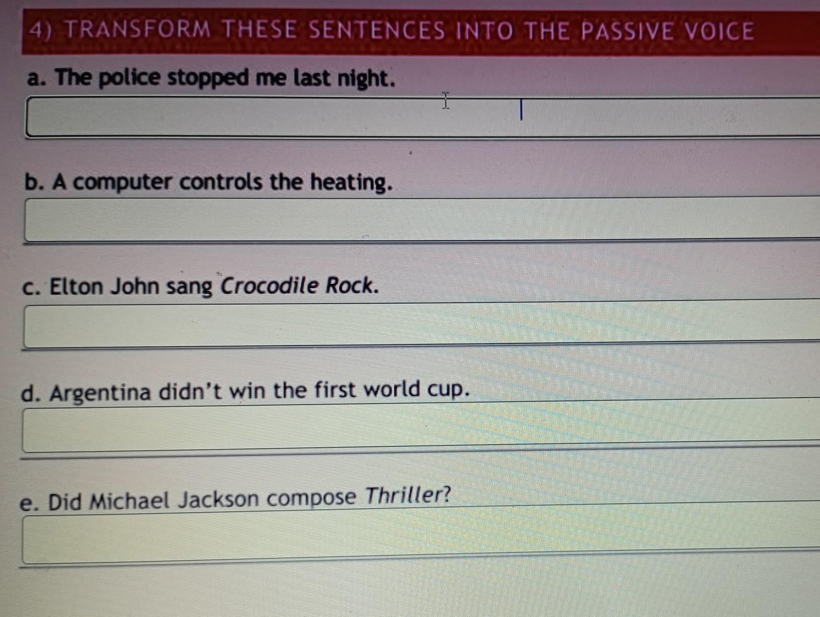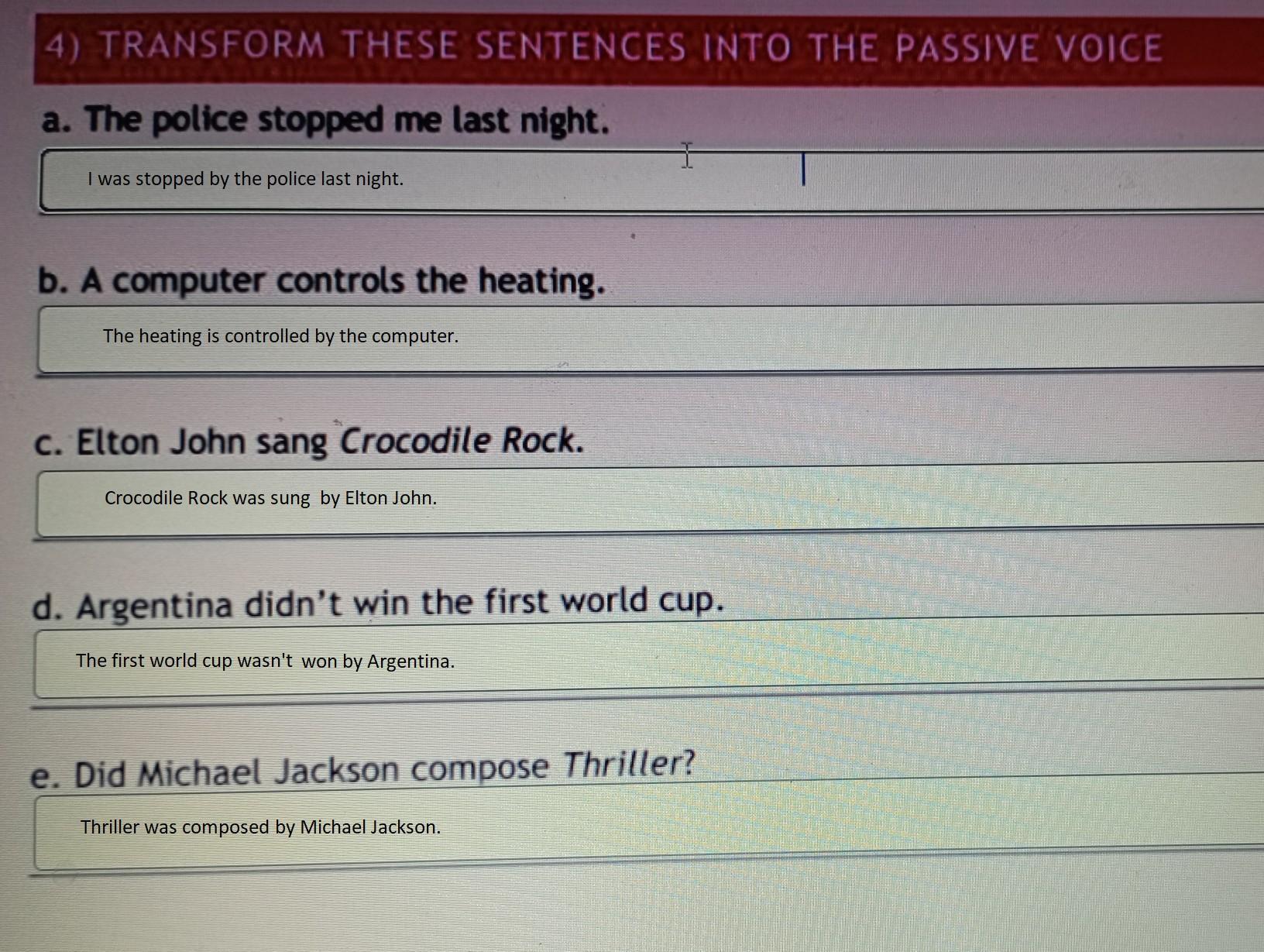 Чтобы преобразовать предложение из активного залога в пассивный, надо дополение данного предложения поставить на место подлежащего а глагол - сказуемое примет форму to be ( в нужном времени) + Participle-II (глагол в третьей форме)