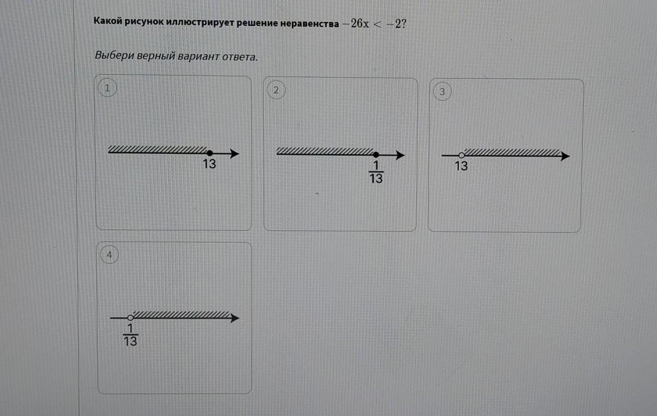какой рисунок иллюстрирует решение неравенства -26x<-2