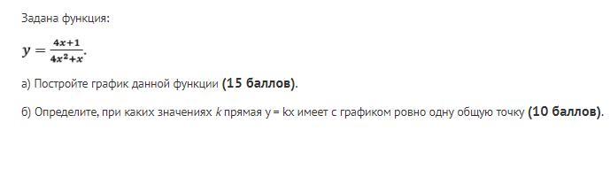 Значит одна общая точка может быть только если она проходит через "выколотую" точку (-0.25; -4). В других случаях 2-е общих точки, а если k = 0 или меньше, то нет общих точек.