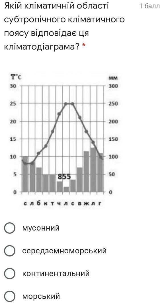 Якій кліматичній області субтропічного кліматичного поясу відповідає ця кліматодіаграма? Допоможіть будь ласка Даю 40 баллів