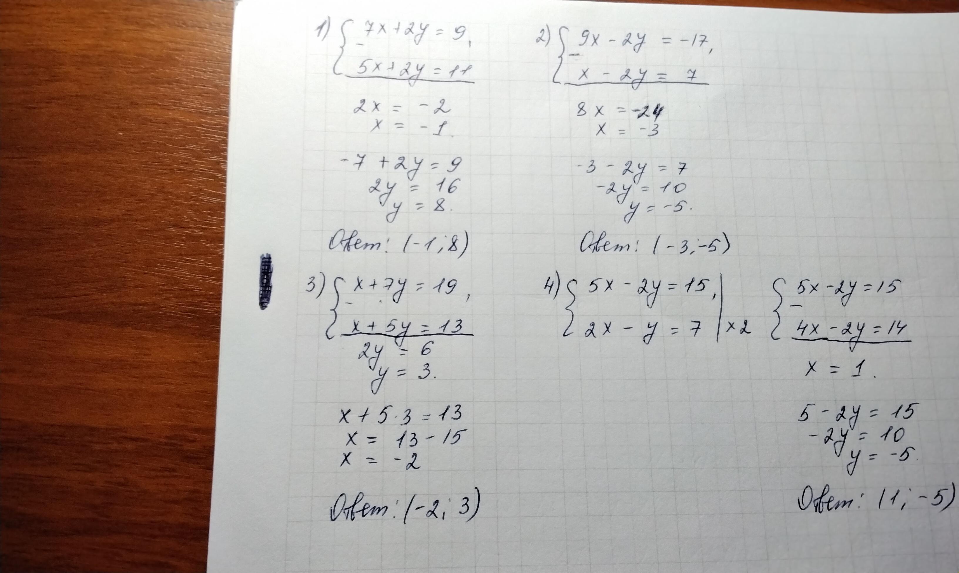 Из первого уравнения вычитаем второе, получаем уравнение с одним неизвестным.Вычислив одну переменную, находим вторую, подставив уже известное значение в любое из уравнений.