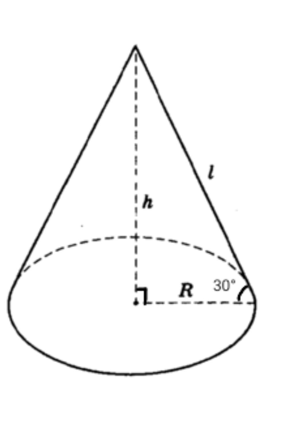 Образующая конуса l наклонена к плоскости основания под углом 30°. Найти высоту конуса и площадь боковой поверхности.