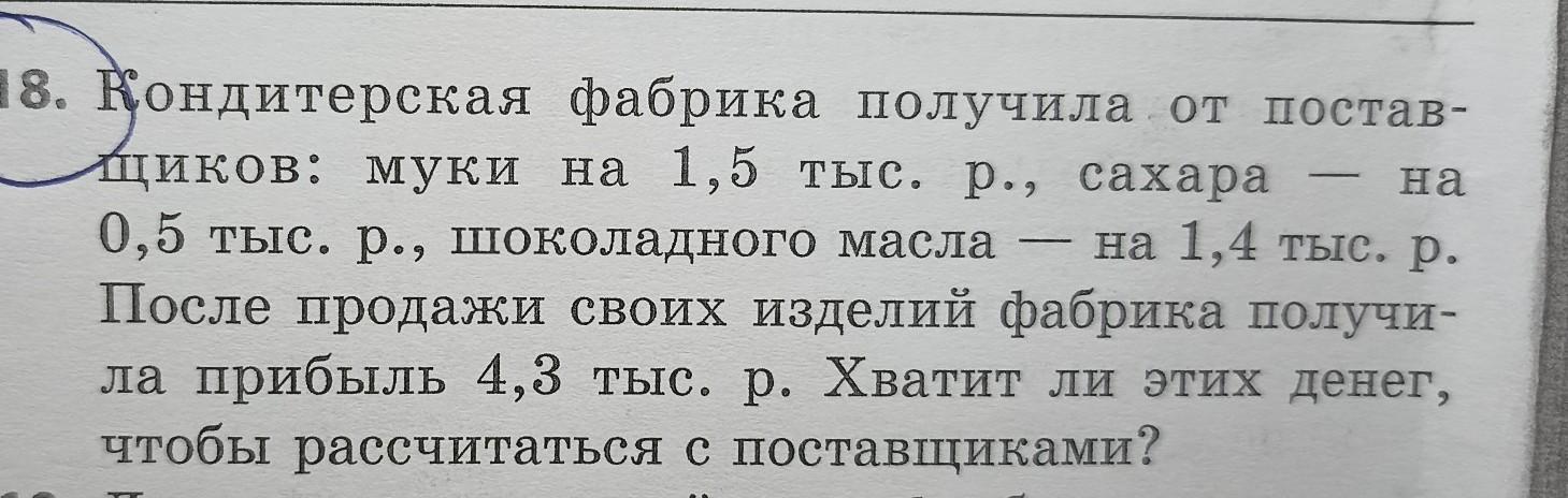 1,5 + 0,5 + 1,4 = 2 + 1,4 = 3,4 тыс.р. должны поставщикам