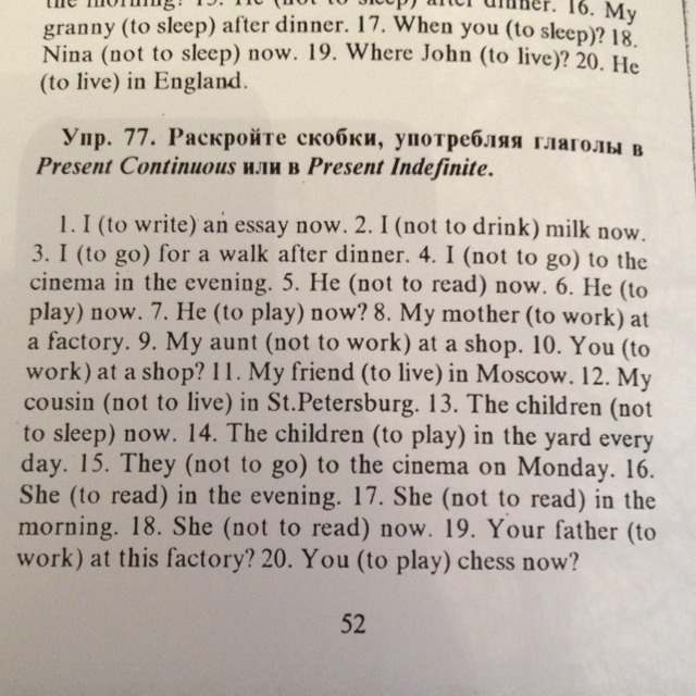 19 Does your father work 20 Are you playing chess now?