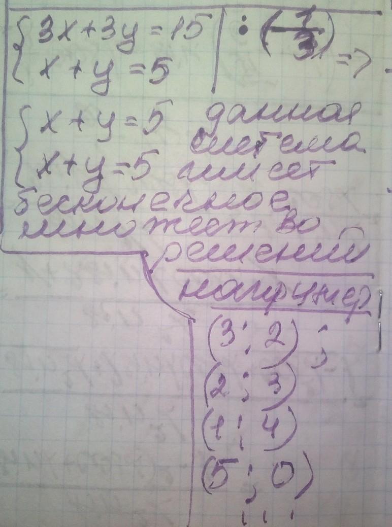 Мне изначально показалось что это будет 2) (0;5) Но позже я выяснила что на место х и у можно поставить 2 и 3, 2+3=5 3•2+3•3=15.А еще на место х и у можно поставить 1 и 4.Так что думаю будет Любое число, но если будет любое число, то мы на место х и у можем поставить 15, 30, 62, 70 и т.д. А в варианте ответов есть только одно подходящие 2. (0;5) Так что будет 2)