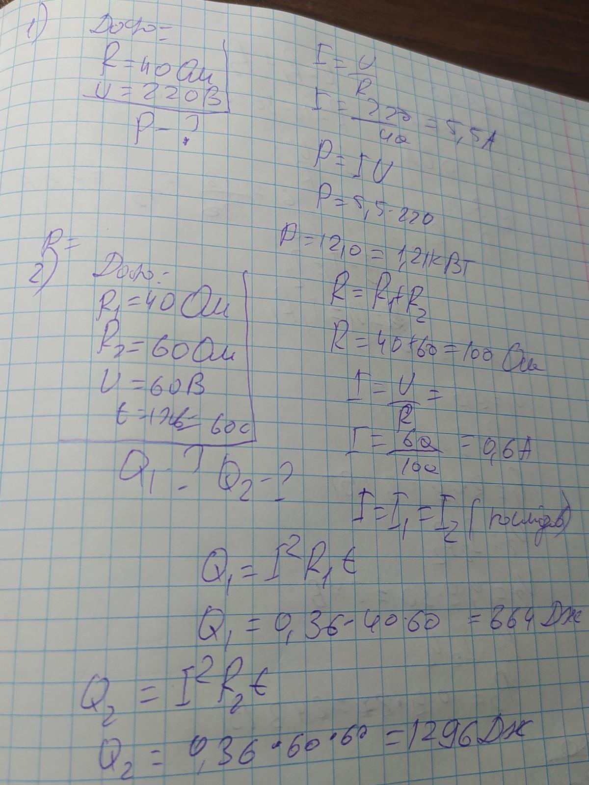 1. Резистор опором 40 Ом включений в мережу 220 В. Яка його