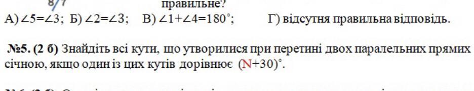 дано: a і b- паралельні прямі, c- січна, один з кутів дорівнює (N+30)°