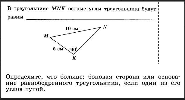 1. Катет МК лежит против угла ∠ N=30°. т.к. он равен половине гипотенузы /по теореме) МN=10 см, значит, угол М равен 90°-30°=60° /т.к. сумма острых углов равна 90°/