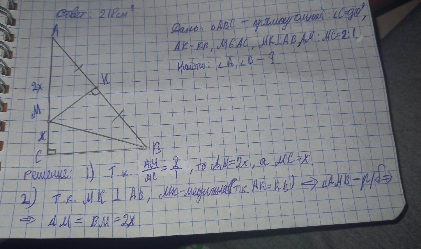 Пусть МС=х , тогда МА=2х ⇒МВ=2х , тк МВ=МА.