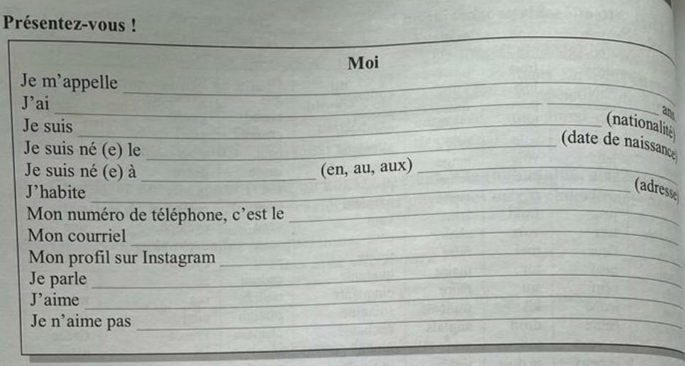 Je parle (указать на каких языках говорите, например je parle russe, anglais, français).