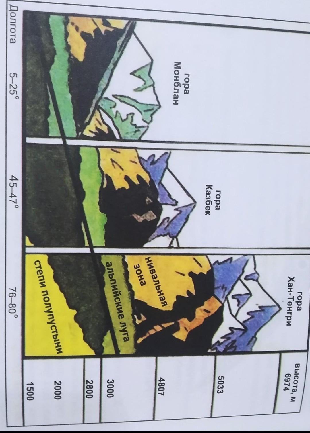 Используя рисунок 90 Определите причину и различия в формировании высотной поясности монблана Казбека и хан-тенгри