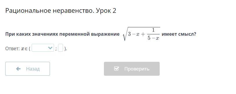 Умножить все части неравенства на (5 - х), чтобы избавиться от дробного выражения: