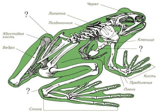 Строение земноводных (лягушка) что писать где я поставила вопросительный знак. Помогите у меня тест