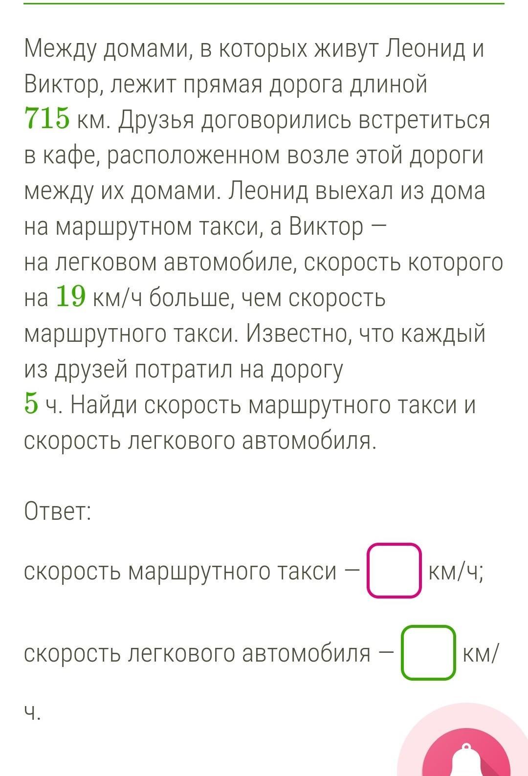 Где х - скорость маршрутки, х + 19 - скорость автомобиля
