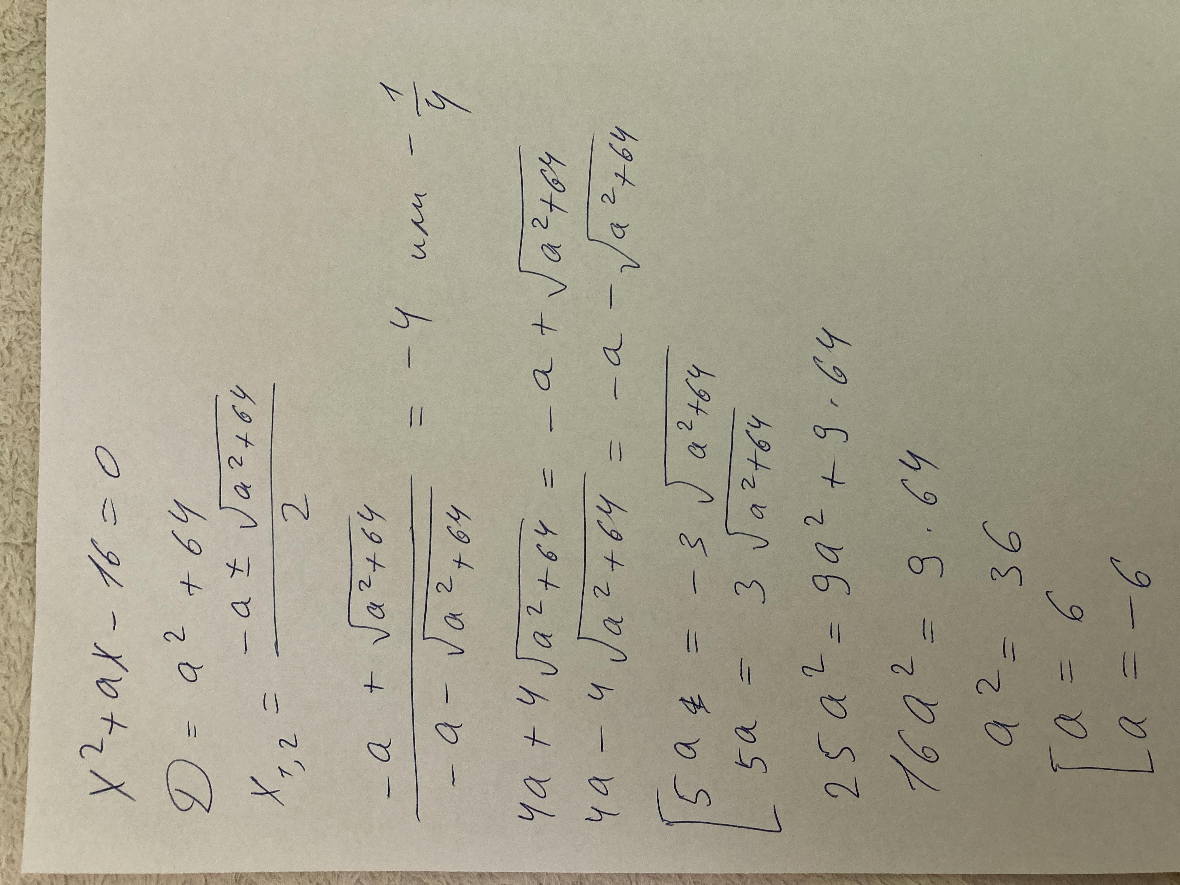 если х₁=2, то х₂=-16/(2)=-8, а их сумма равна 2-8. тогда а =-(-6)=6