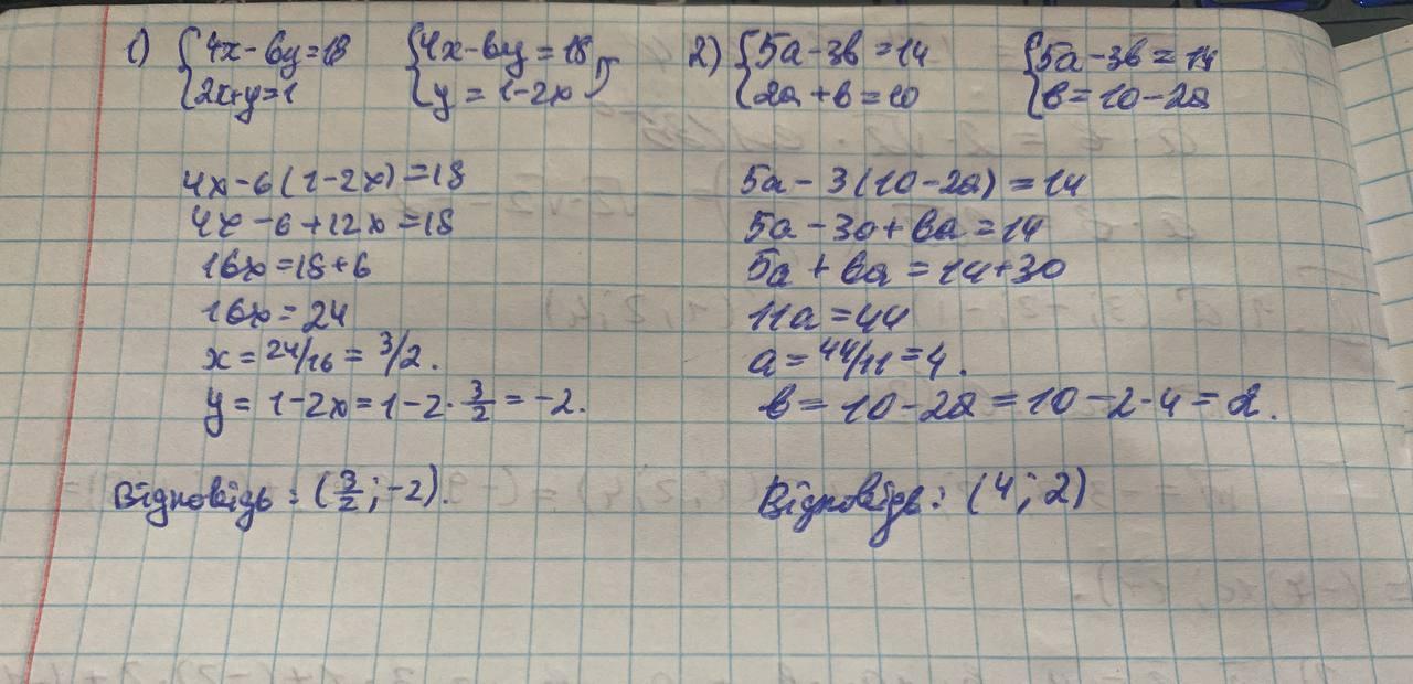 Розв’язати систему рівнянь з двома змінними методом підстановки 1 и 2