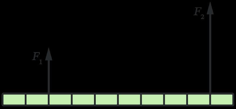 Прямоугольная однородная дощечка лежит на гладком столе. Перпендикулярно стороне дощечки вдоль поверхности стола прикладывают силы F1=3 Н, F2=4 Н и неизвестную силу F3 так, что дощечка остается в покое. Точки приложения и направления сил F1 и F2 указаны на рисунке.