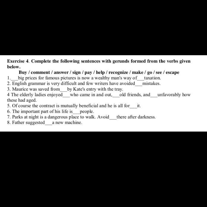 Buy / comment / answer / sign / pay / help / recognize / make / go / see / escape