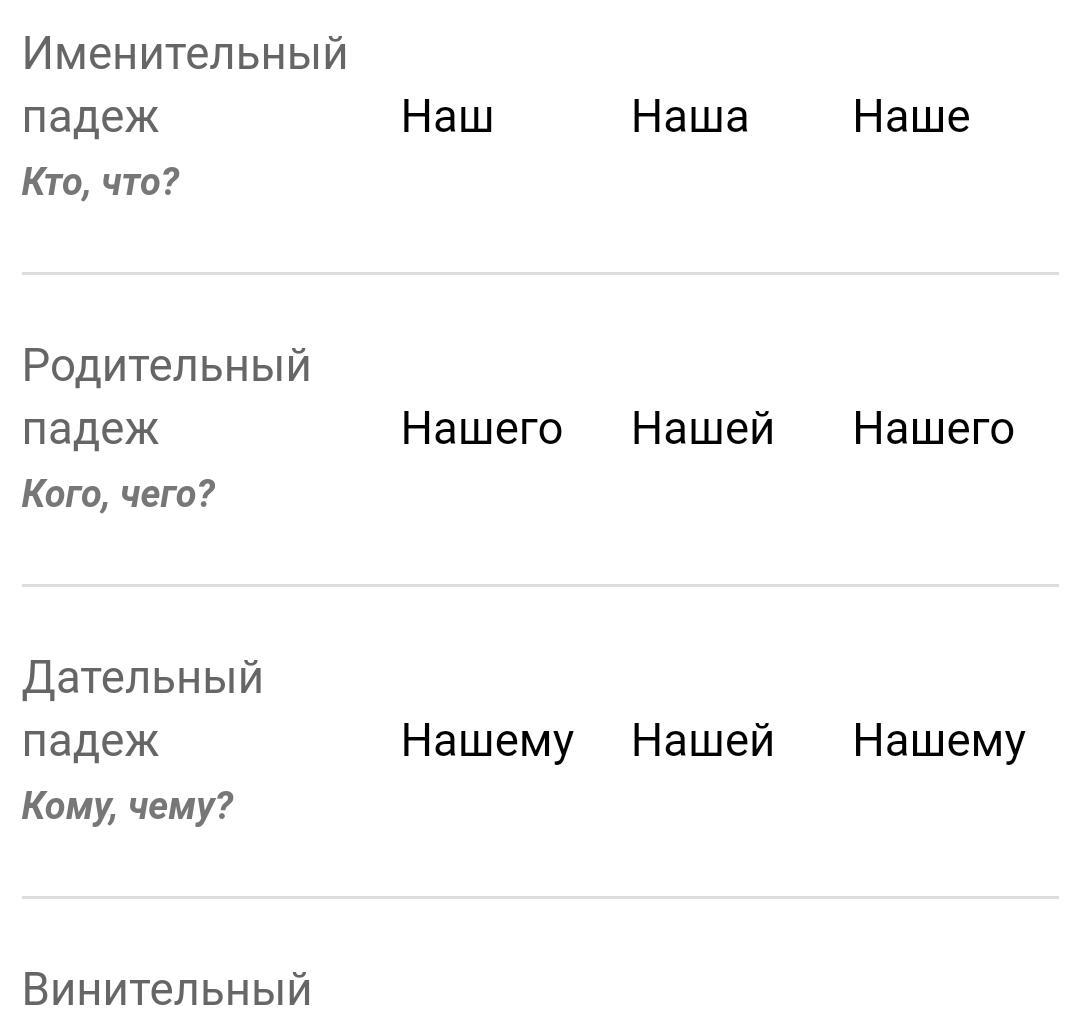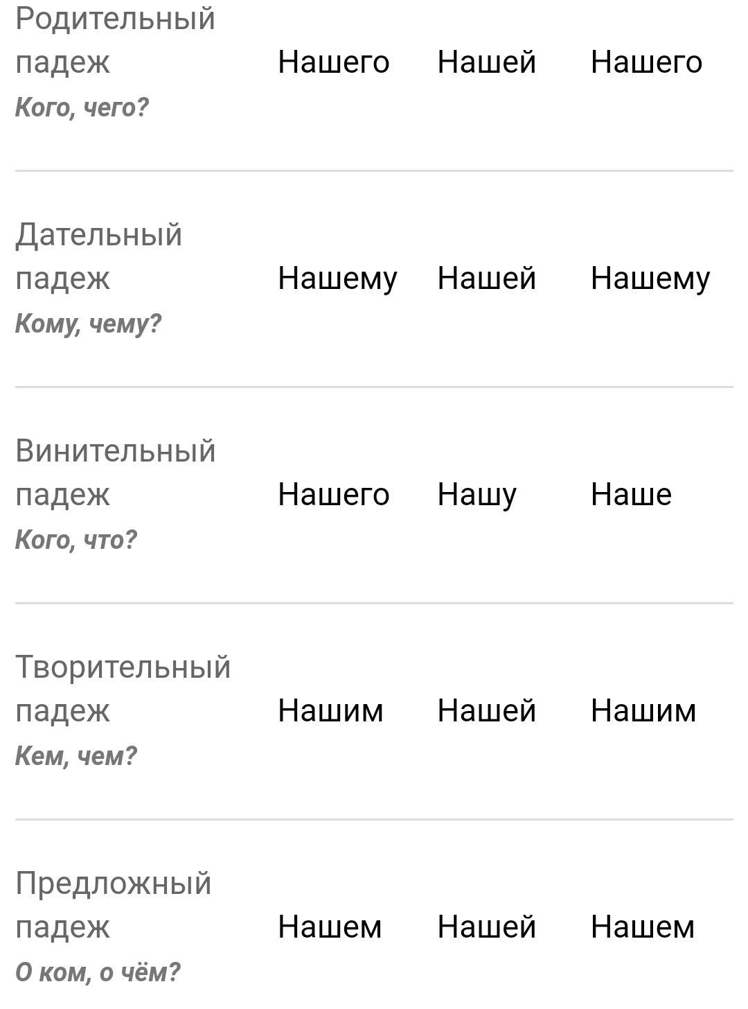 я правильно поняла да, допустим в слове "нашим" нужно найти род, число и падеж?