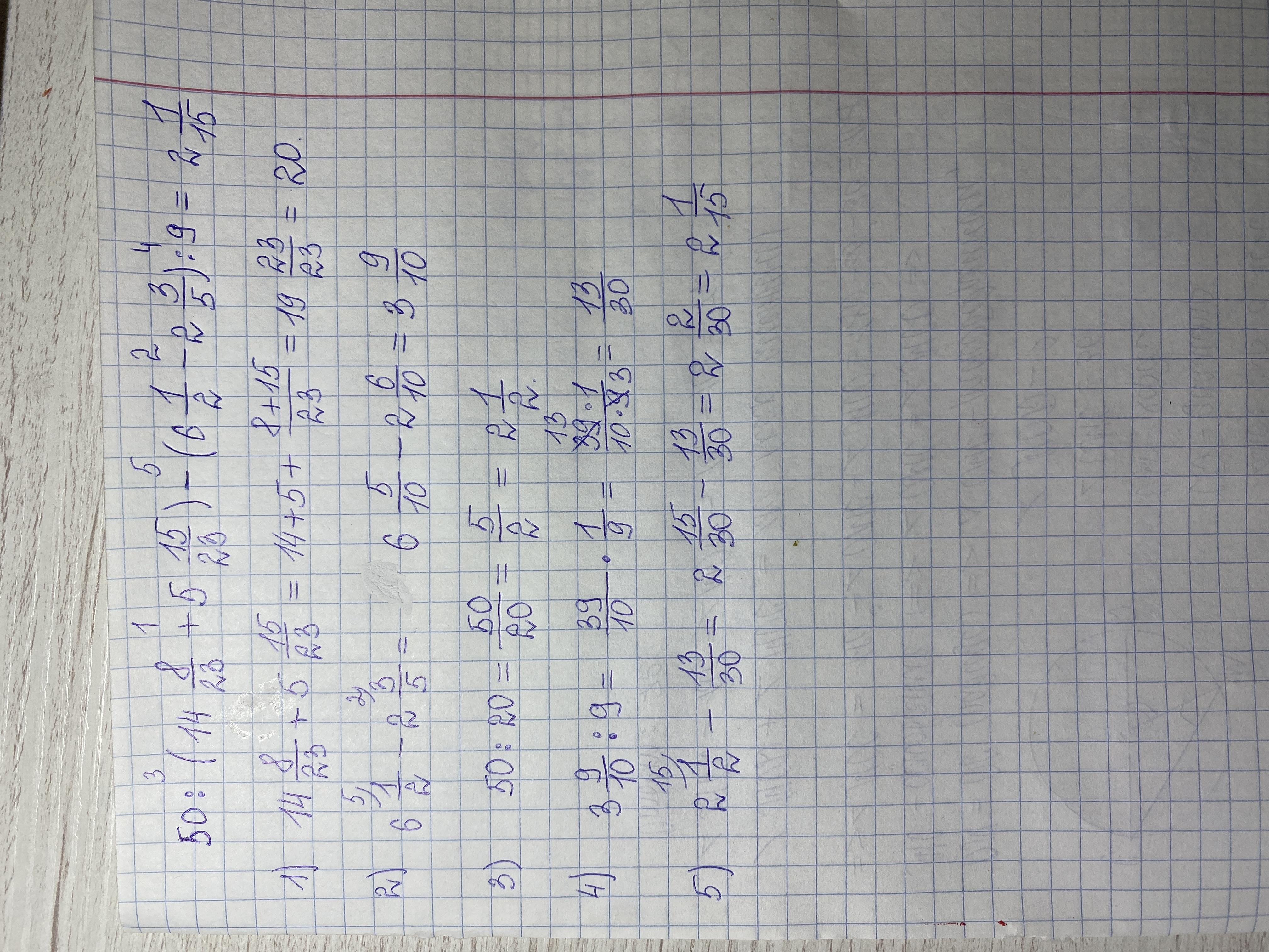 5) 2. 1/2 - 13/30 = 2. 15/30 - 13/30 = 2. 2/30 = 2. 1/15