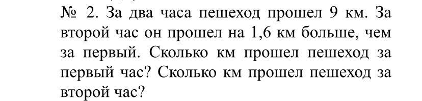 пусть х км пройдёт за первый час, тогда за второй час пройдёт (х+1,6)км