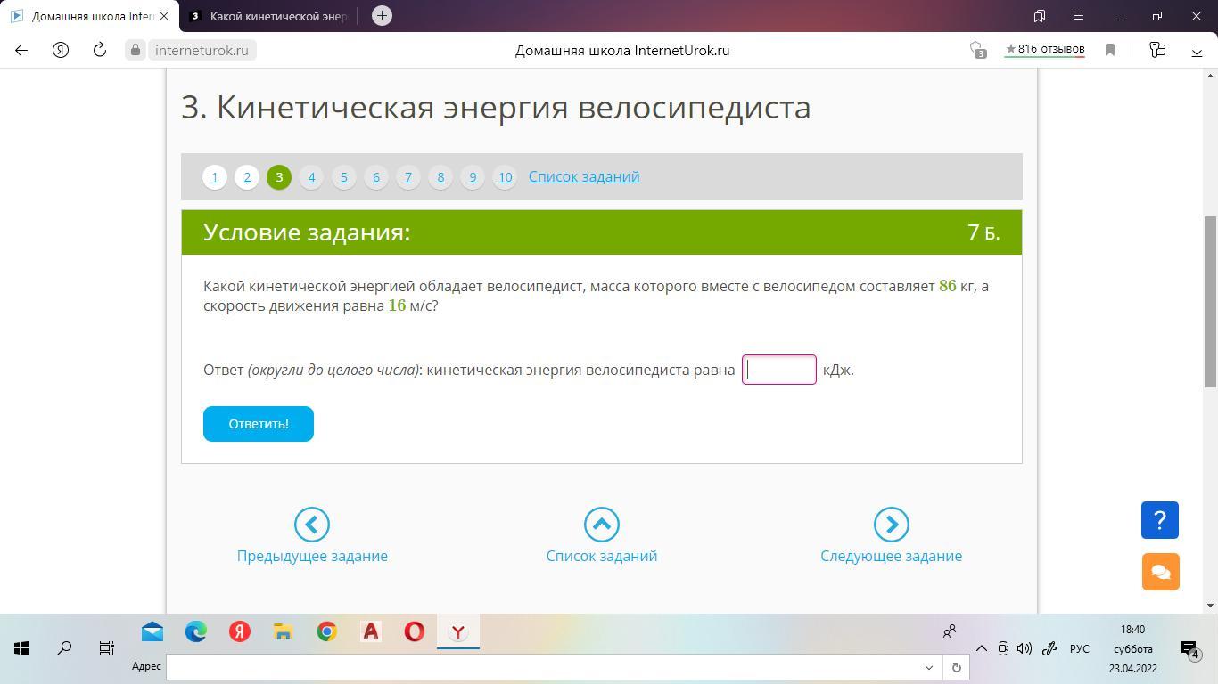 E=mv^2/2=11кДж (без округления 11,008кДж)