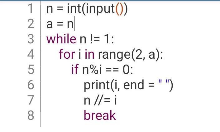 программа на питоне, которая находит все множители этого числа. Например я ввожу 12 , а она выводит 3 2 2