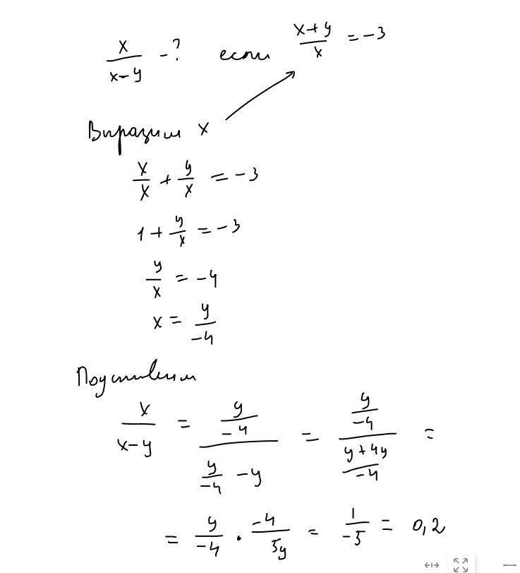 х/(х-у)=х/(х-(-4х))=х/(5х)=1/5=0.2