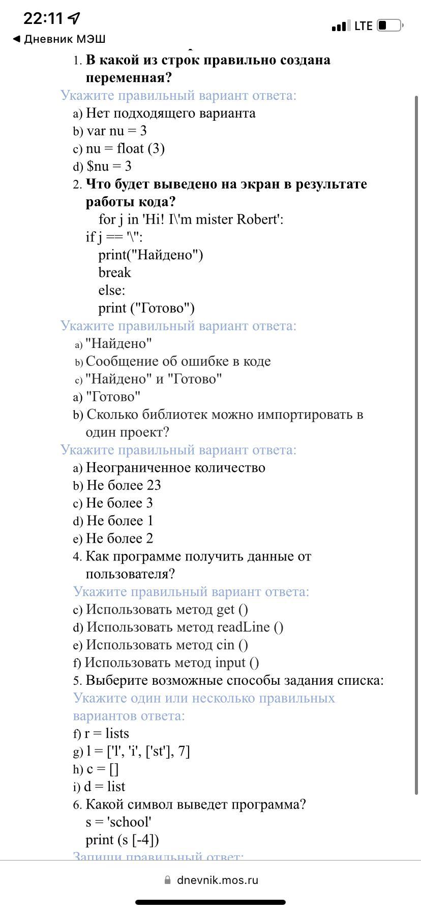 6) выведет h