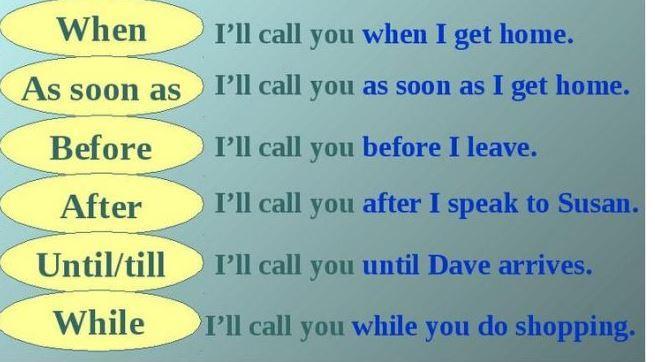 В придаточных времени вместо будущего используется настоящее время. См. вложение