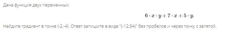 Дана функция двух переменных. Найдите градиент в точке (-2;-4).