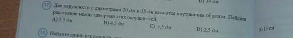 Переводим диаметры 20 и 15 в радиусы,то-есть в 10 и 7.5 соответственно и отнимаем 10 от 7.5,получаем 2.5 дм