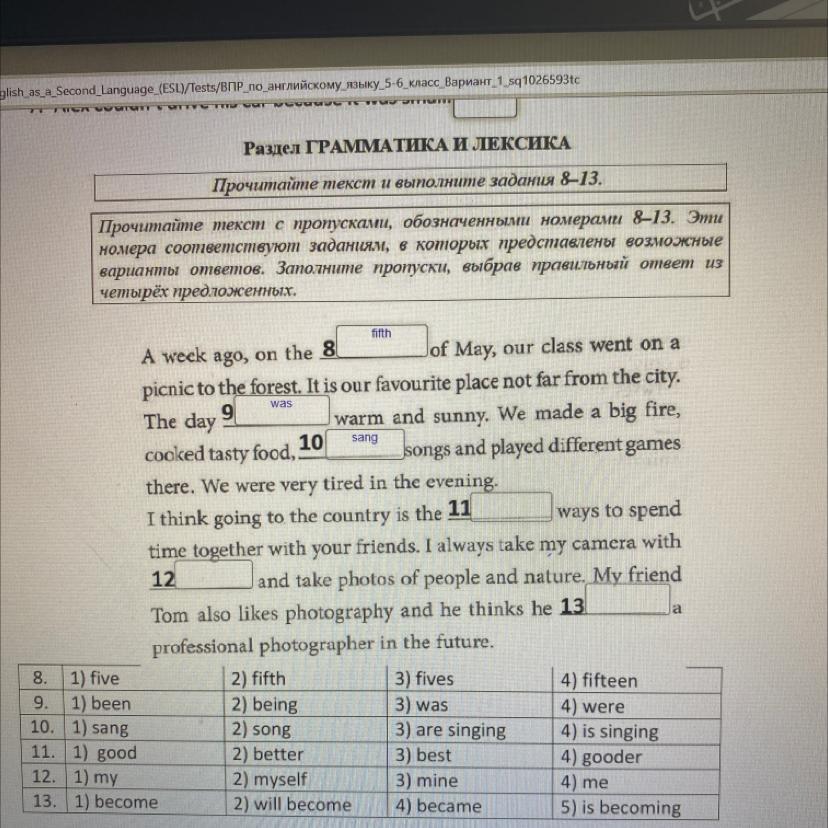 Прочитайте текст с пропусками, обозначенными номерами 8-13. Эти
