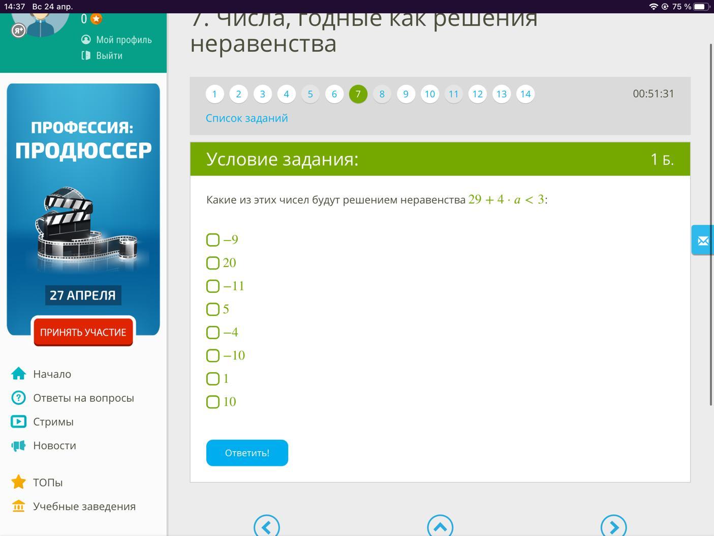 Сравнивая все значения, мы получим, что правильными ответами будут: -9, -10 и -11