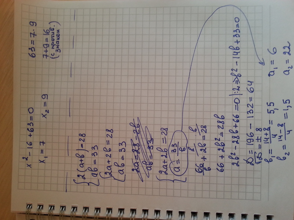 1)Решите уравнения, применяя теорему, обратную т. Виета. х2-16х+63=0 5.