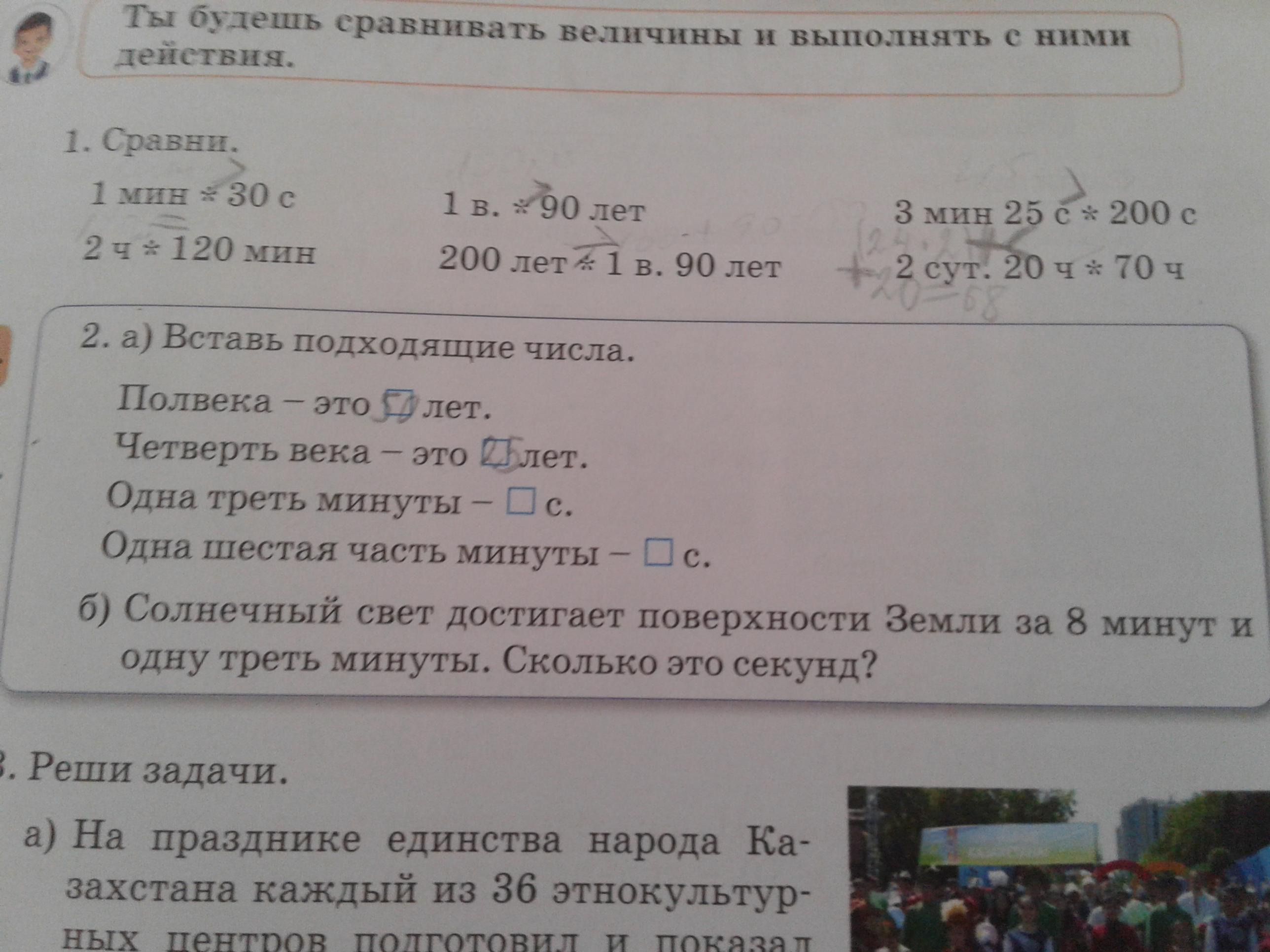 Математика 3 класс 4 четверть страница 81 номер 2 (б Солнечный свет достигает поверхности земли за 8 минут и одну треть минуты. Сколько это секунд?