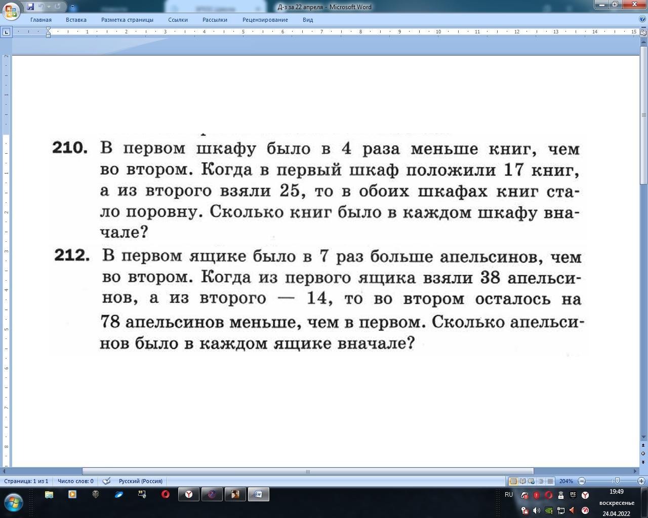 В первом шкафу было 14 книг, во втором 14*4=56.