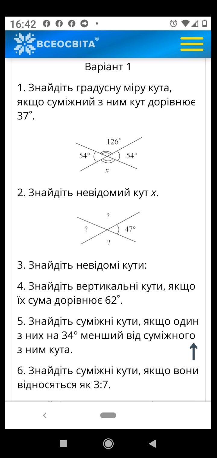 2) сумма смежных углов=180°=> 180-47=133°=>вертикальный угол будет=133°, а вертикальный угол(угол который лежит напротив 47°) будет равен 47°