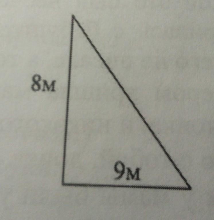 Поскольку треугольник прямоугольный, то S=(9*8):2=36m²
