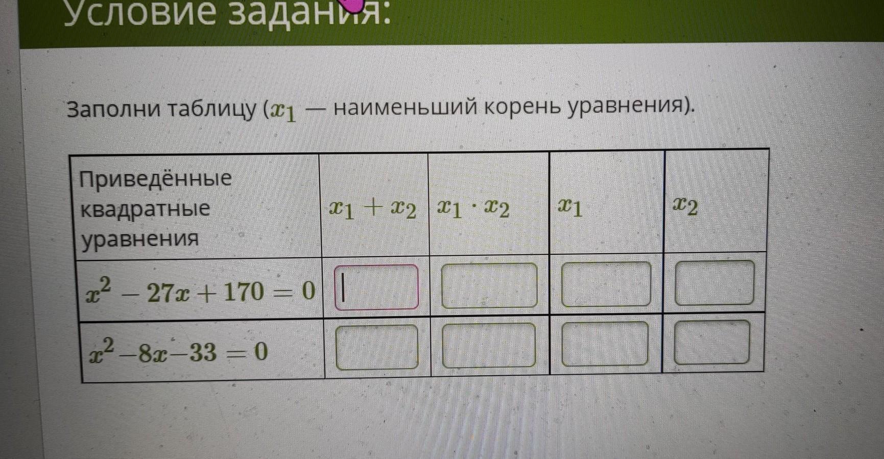 Всё исходит из теоремы Виета. Но, я так понимаю, нужны тебе только ответы.