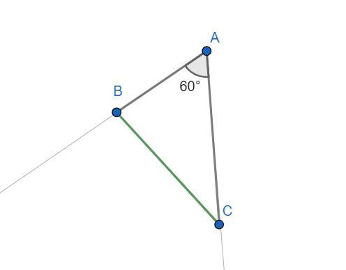 1) Чертим угол в 60°, отмечаем точку A в вершине угла